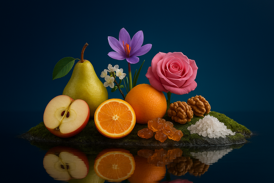 Note di Cuore: Osmanto, Zafferano, Rosa, Ambra, Muschio di Quercia, Sale Amilico